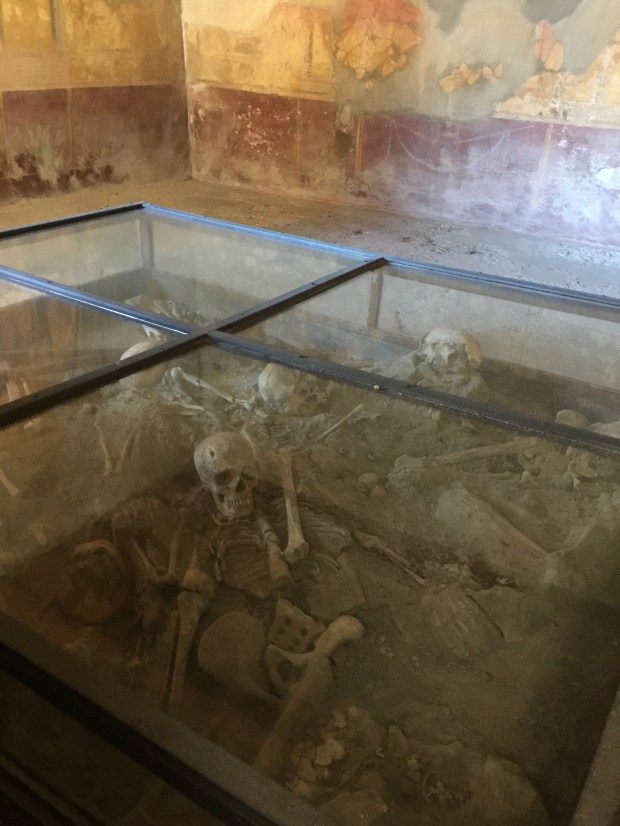 The unsuspecting inhabitants had little time to flee and many perished as they were going about their business. The bodies of the dead, some in crouching and lying positions protecting their faces, can be seen today.